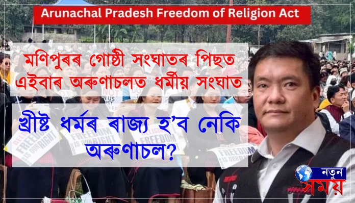 ১৯৭৮ চনত ৰাজ্যখনত অৰুণাচল প্ৰদেশ ধৰ্মীয় স্বাধীনতা আইন গ্ৰহণ কৰা হৈছিল যদিও আইনখন কাৰ্যকৰি কৰাৰ বাবে বিধি প্ৰস্তুত কৰা নাছিল৷ ৰাজ্যত কংগ্ৰেছ আৰু বিজেপিৰ কেইবাখনো চৰকাৰ গল যদিও এই আইনখনৰ বাবে বিধি প্ৰস্তুত কৰাৰ বাবে কোনো চৰকাৰে পদক্ষেপ গ্ৰহণ কৰা নাছিল৷ শেহতীয়াভাবে ধৰ্মান্তৰকৰণ ৰোধ আইনৰ বিধি প্ৰস্তুত কৰাৰ বাবে উচ্চ ন্যায়ালয়ত এক ৰাজহুৱা স্বাৰ্থজড়িত আবেদন অৰ্থাত পি আই এল উত্থাপন কৰা হ’ল৷ ২০২৪ ৰ ৩০ ছেপ্তেম্বৰত গুৱাহাটী উচ্চ ন্যায়ালয়ৰ ইটানগৰ বিচাৰ পীঠে আইনখনৰ বিধি প্ৰনয়ন কৰি ছমাহৰ ভিতৰতে কাৰ্য্যকৰী কৰাৰ নিৰ্দেশ দিলে৷ এই ৰায়ৰ পিছতে উত্তপ্ত হৈ পৰিছে অৰুণাচল ৷ ইয়াৰে বহিঃপ্ৰকাশ ঘটিল দুদিনমান আগতে৷ এচাম লোক সমবেত হৈ নিজাববীয়াকৈ ঘোষণা কৰিলে অৰুণাচল খ্ৰীষ্টান ৰাজ্য৷ ১৯৭৮ চনৰ পৰা অৰুণাচলত খ্ৰীষ্টান মিছনেৰীৰ কাৰ্যকলাপত প্ৰতিবন্ধকতা অনাৰ বাবে আইন অনা হৈছিল যদিও বিধি প্ৰস্তুত নকৰা বিবে যোৱা ৪৭ বছৰে আইনখন কাৰ্যকৰি কৰা নাছিল৷